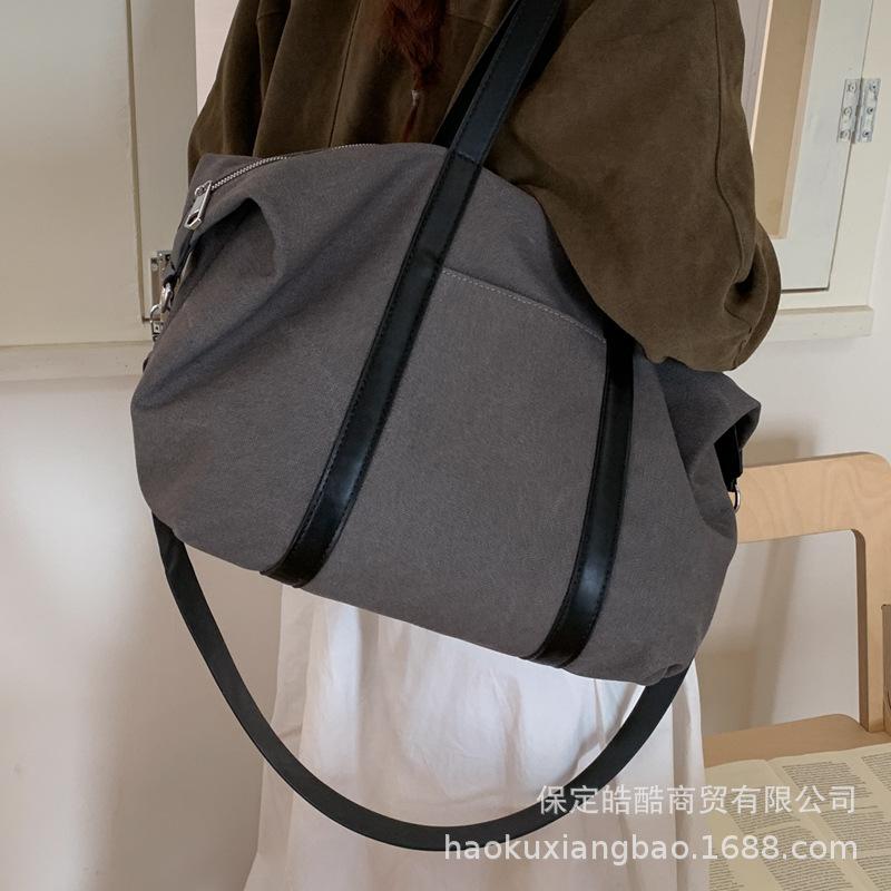 Canvas bag women's large capacity 2025 new autumn and winter casual messenger bag versatile single shoulder college student class tote bag