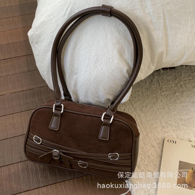 Vintage niche suede bag women's 2025 new fashion super fire shoulder armpit bag commuter portable pillow bag