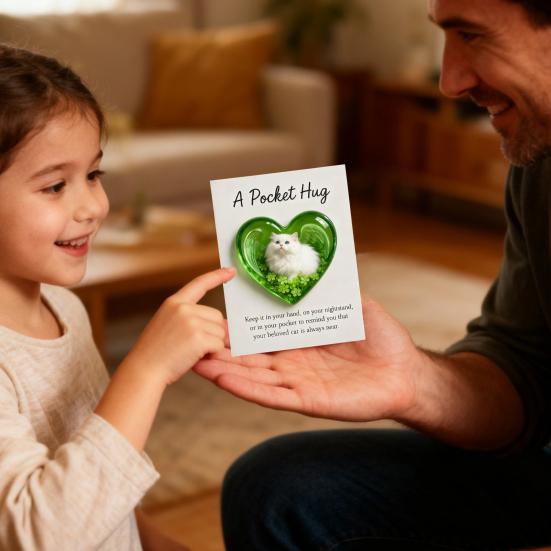 Cat Memorial Pocket Hug with Inspirational Card Emotional Support Love Heart Shaped Cat Pocket Token Decoration Cat Owners Keepsake Gift
