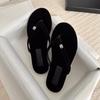 Sheepskin small fragrant wind velvet rhinestone pearl flip-flops women's flat bottom toe beach summer wear sexy sandals