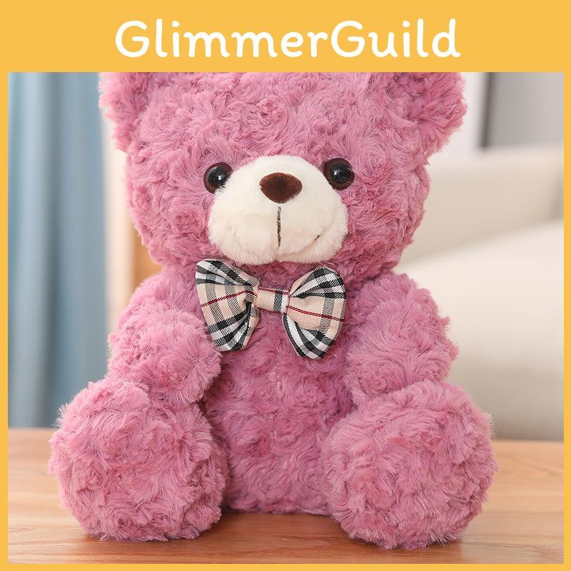 This plush bear toy features soft magic circle fabric with a charming plaid bow decoration, offering a tactile and aesthetic appeal, and is filled with durable PP cotton for a plush feel. Ideal for gifting or decorative use in bedrooms or living spaces, it provides a comforting presence. Wipe clean with a damp cloth to maintain its softness.