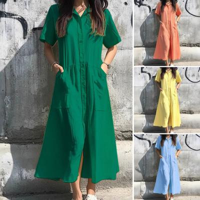 Γυναικείο Φόρεμα Πιέτα Κοντομάνικο Μονόκουμπο Καθημερινό Φόρεμα με Τσέπες Μονόχρωμο Χαλαρή Εφαρμογή Φόρεμα-Πουκάμισο