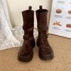 Women's Khaki Ankle Boots with Thick Sole, Chunky Heel, Elastic Slimming Fit, and Two-Way Wear for Spring