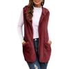 Women's Fashion Solid Color Hooded Sleeveless Plush Cardigan Vest Jacket With Pockets