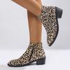 Autumn 2025 Chunky Heel Leopard Print Short Boots: Women's Plus Size Pointed Toe, British Style, Medium Heel Fashion
