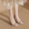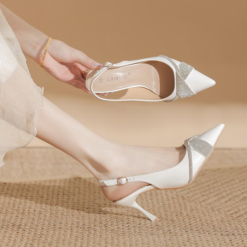 BYZ Backless Pointed Toe Stiletto Microfiber Rhinestone Buckle Heels - Versatile Commuter Work Shoes for Women