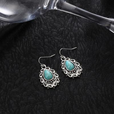 1 Ζευγάρι Γυναικεία Ρετρό Κρεμαστά Σκουλαρίκια με Άγκιστρο, Χαραγμένο Σχέδιο, Μποέμ, με Ψεύτικο Τυρκουάζ, Σκουλαρίκια σε Vintage Εθνικό Στυλ, Δώρο Κοσμήματος