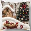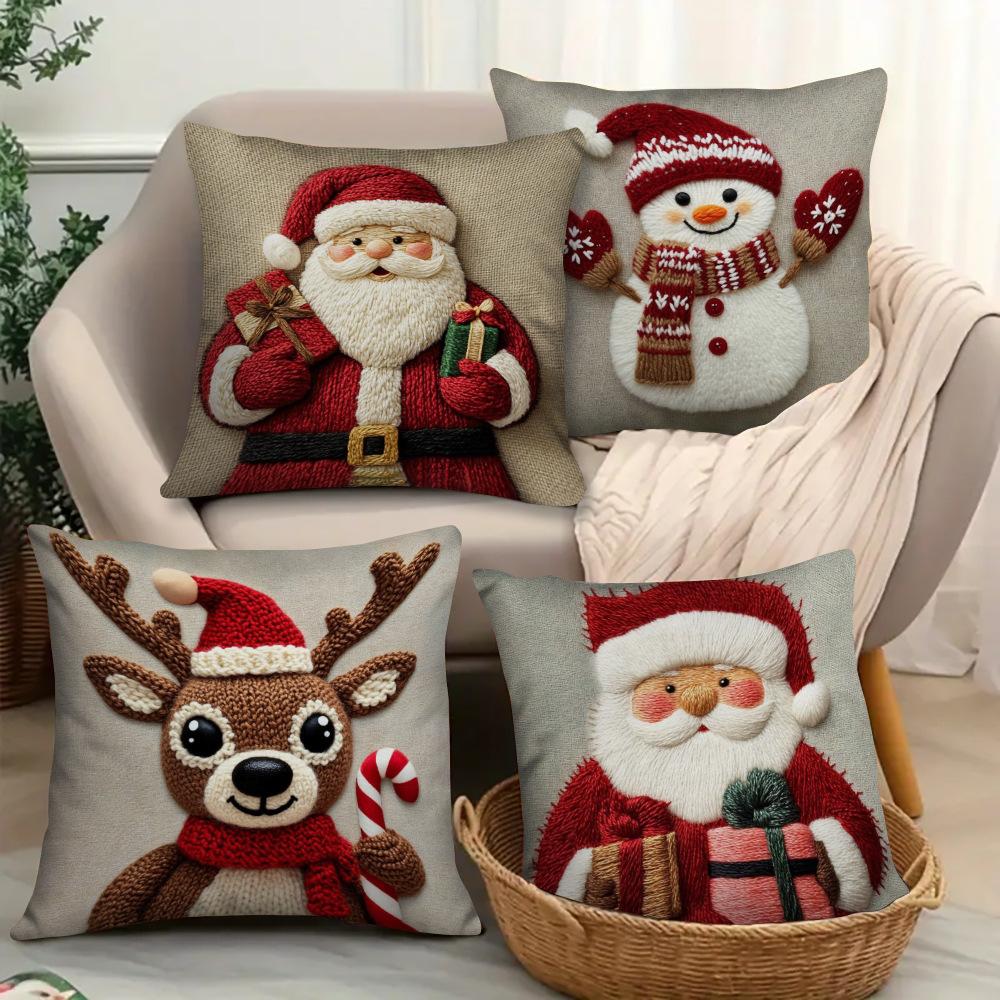 Christmas Pillowcase, Cute Cartoon Imitation Embroidery Linen Print Sofa Pillow Cover, Festival Decoration, Festival Gift (Pillow Insert Not Included)
