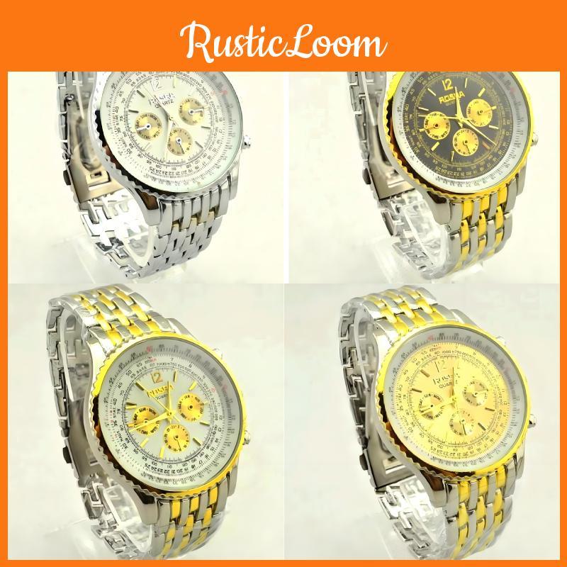 Men Business Quartz Watch Stainless Steel Case Rubber Strap Formal Wear Casual