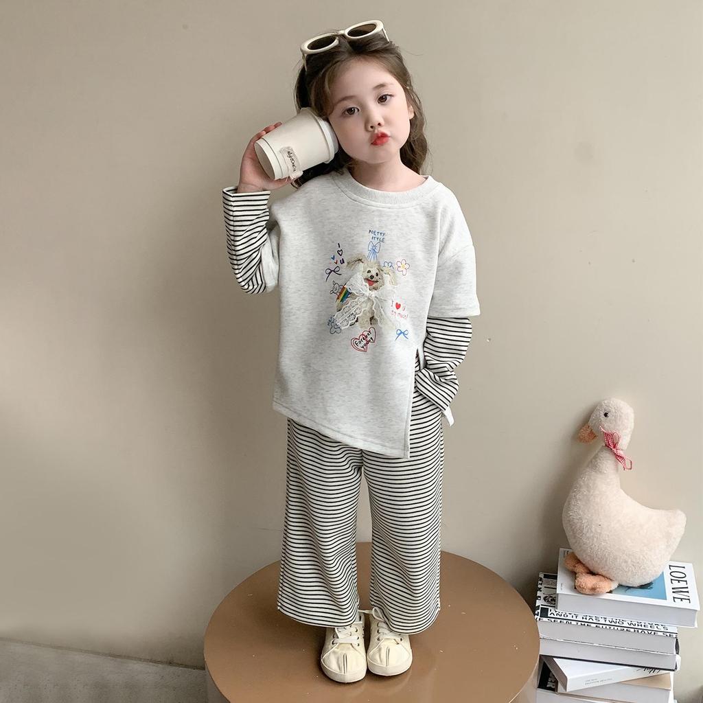 Φθινόπωρο 2025 Σετ Φούτερ & Φόρμας Color Block για Κορίτσια - Ριγέ Μακρυμάνικο Σετ Δύο Τεμαχίων