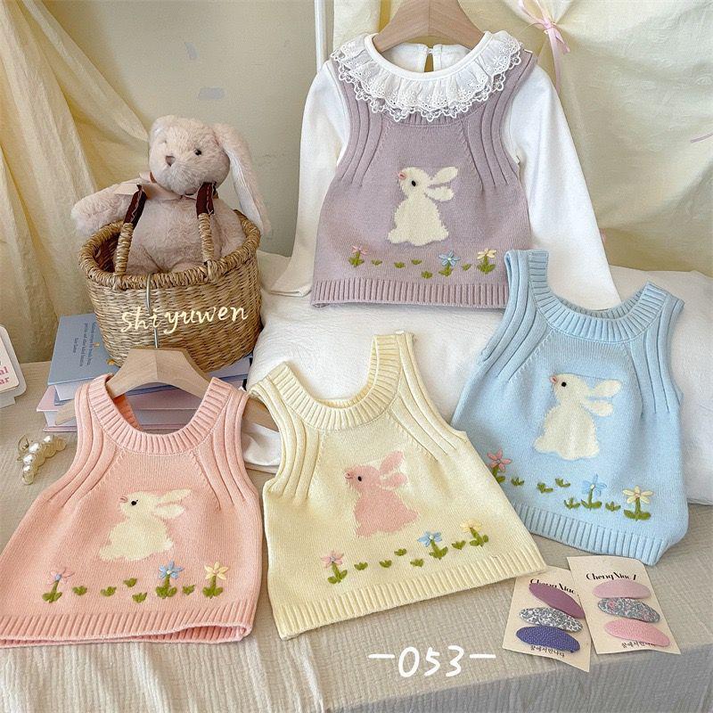 Κορεάτικο Πλεκτό Γιλέκο με Κουνέλι Κινουμένων Σχεδίων για Κορίτσια - Αμάνικο Φθινοπωρινό/Χειμερινό Πουλόβερ