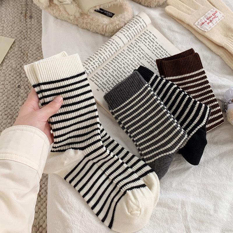 Versatile Striped Warm Cashmere Socks and Trendy Mid-calf Socks for Daily Use