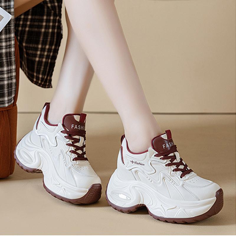 Γνήσια Δερμάτινα Λευκά Παπούτσια Γυναικεία Μόδα Αθλητικά Παπούτσια Αναπνέοντα Επίπεδα Παπούτσια Πλατφόρμας Μάρκα Γυναικεία Ύψος Αύξησης 9cm