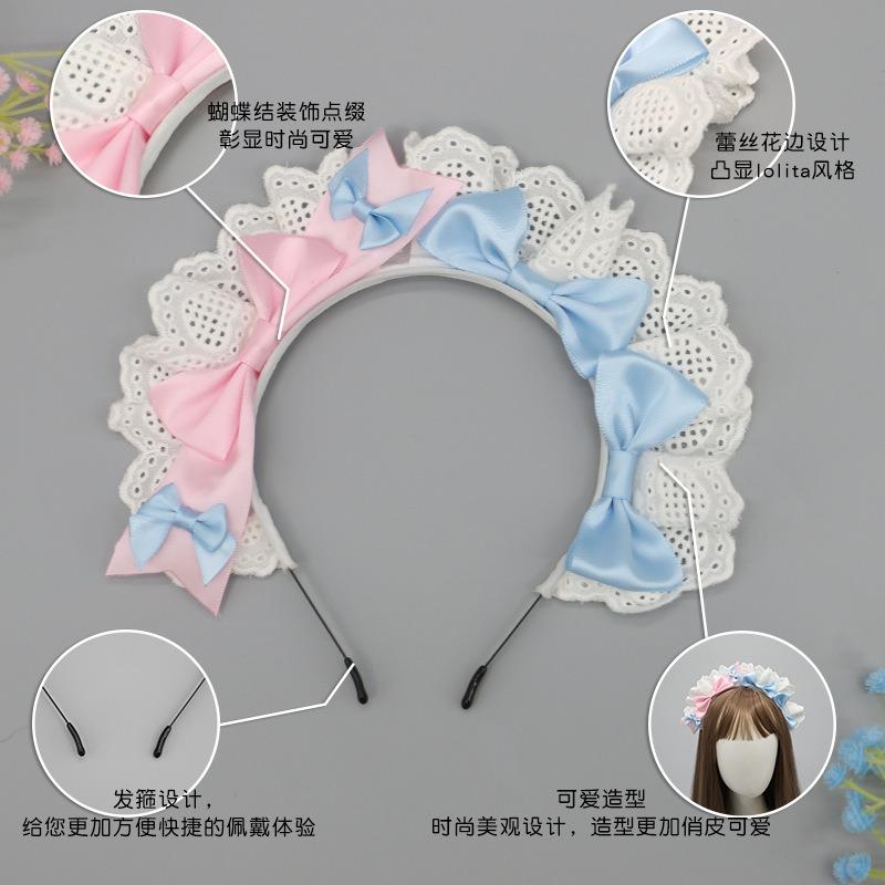 Handmade cute olita hair accessories lo girl coffee maid headband lace bow headgear decoration