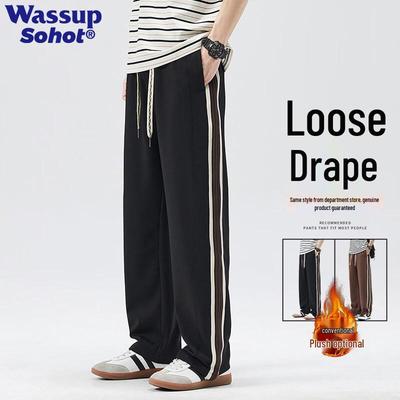 Wassup Sohot Men's Striped Loose Straight-Leg Casual Pants