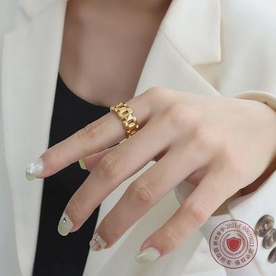 Contemporary European & American 18k Gold Plated Stainless Steel Open Ring for Women - Versatile, Stylish Jewelry with Personality