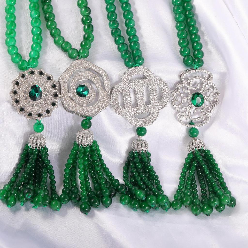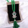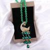 Trendy Green Bead Long Sweater Chain with Tassel Pendant - Light Luxury Necklace