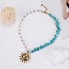 Bohemian Pearl Chip Beaded Sunflower Choker Necklace in Two-Tone Stainless Steel