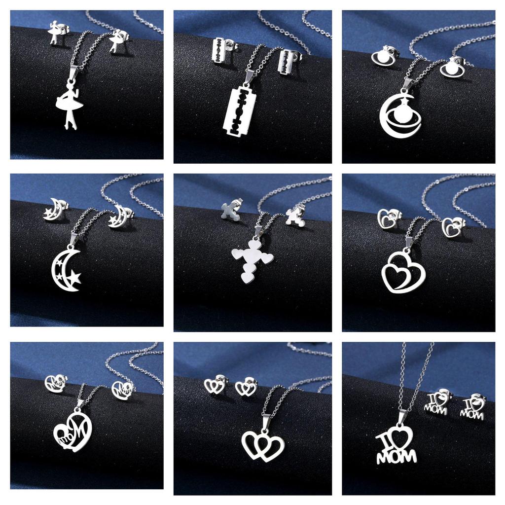 Stainless Steel Necklace & Earring Set - Smooth Clavicle Design with Stud Earrings