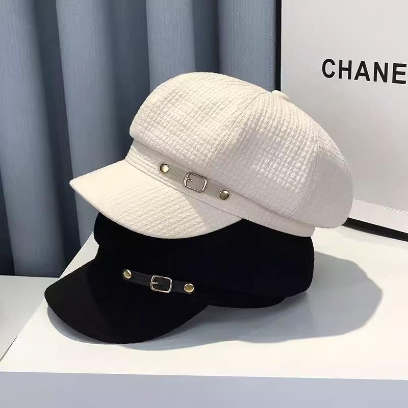 Women's Black Octagonal Newsboy Beret: Korean Style Painter Hat for Larger Head, Autumn/Winter