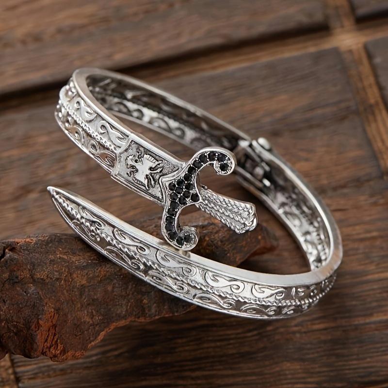 Fashion Black Diamond Sword Bangle: Black Women's Ring with European, American, and Korean Style Thai Silver.