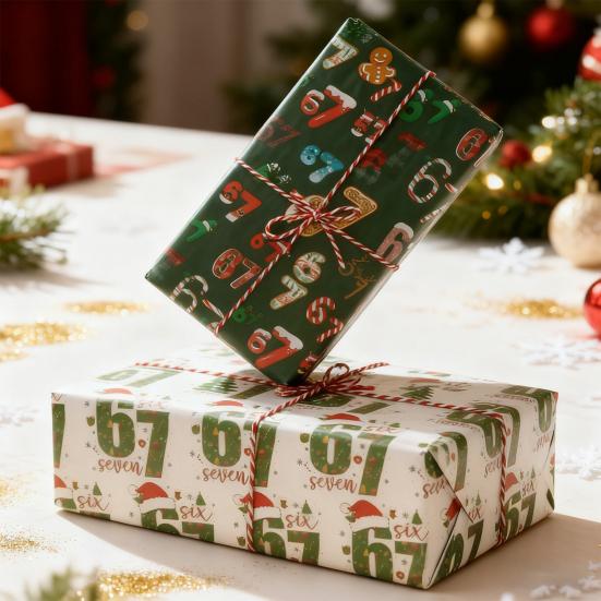 Εορταστικό Σχέδιο Διακοπών: Αγκαλιάστε το πνεύμα των Χριστουγέννων με χριστουγεννιάτικο χαρτί περιτυλίγματος. Οι πράσινοι αριθμοί "6" και "7", τα κόκκινα χριστουγεννιάτικα καπέλα και τα πράσινα στοιχεία πεύκου εμποτίζουν μια εορταστική ατμόσφαιρα στις παρουσιάσεις των δώρων σας.