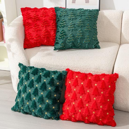 2Pcs Throw Pillow Covers Christmas Tree Pattern Soft Plush Xmas Pillowcases Sofa Bed Washable Decorative Cushion Covers