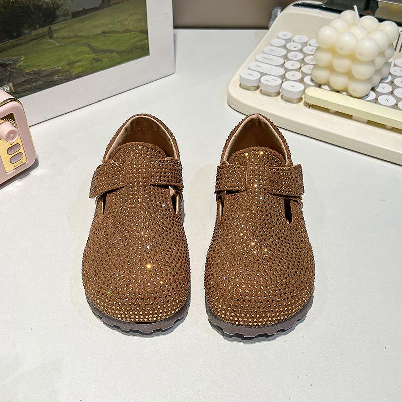 Foreign style girls fashion rhinestone Birkenstocks 2025 autumn new children's soft-soled comfortable leather shoes casual shoes single shoes