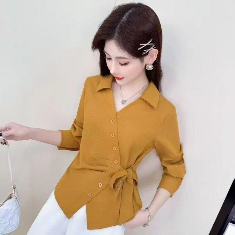 2025 Autumn Women's Long-Sleeve Irregular Tie-Waist Slimming Shirt