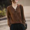 Women's Plus Size Rhinestone V-neck Knit Sweater - Autumn Fashion Long Sleeve Top