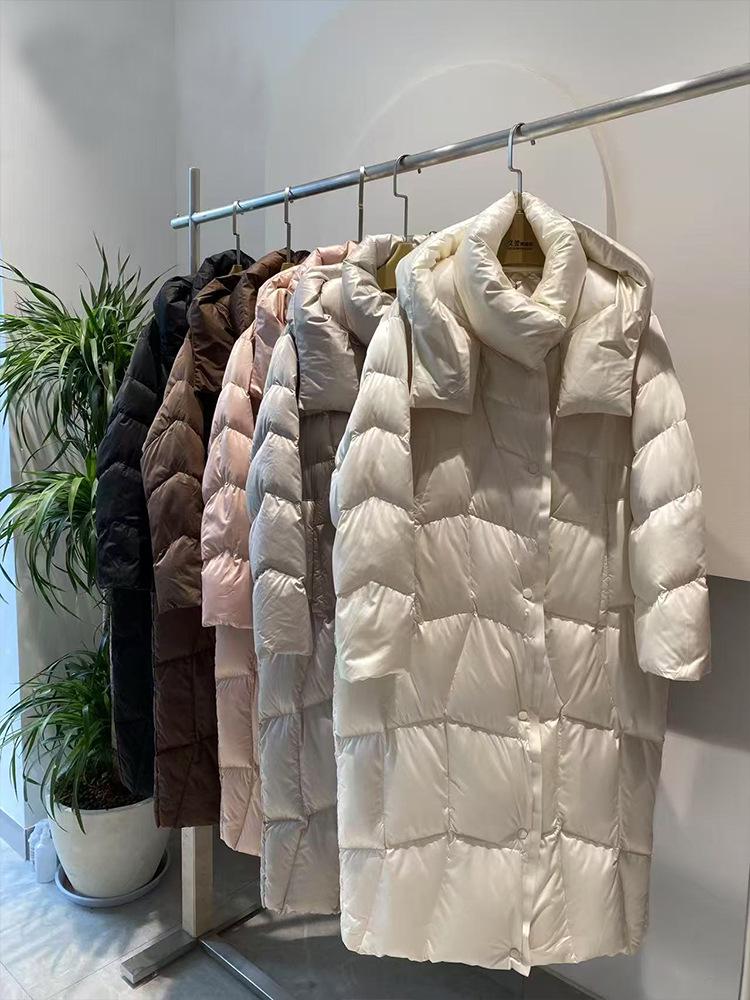 Γυναικείο μοντέρνο χοντρό λευκό παλτό με κουκούλα και πούπουλα - Ζεστό, χειμερινό πανωφόρι με χαλαρή εφαρμογή