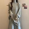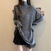 Women's Plus Size Retro Lace High-Neck Sequin Sweater - Autumn/Winter Hip-Length Base Layer