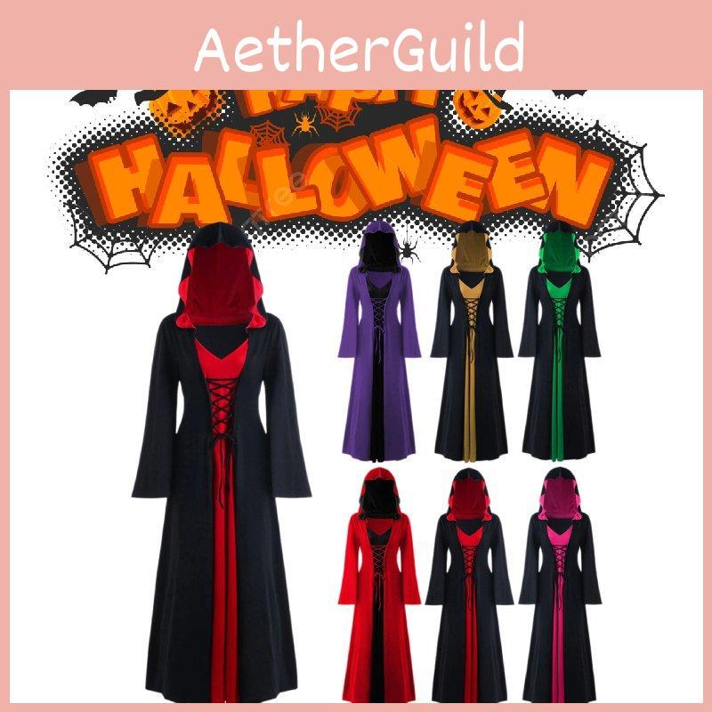 Lady Witch Halloween Hooded Loose Skirt V Neck Long Sleeves Costume Performance