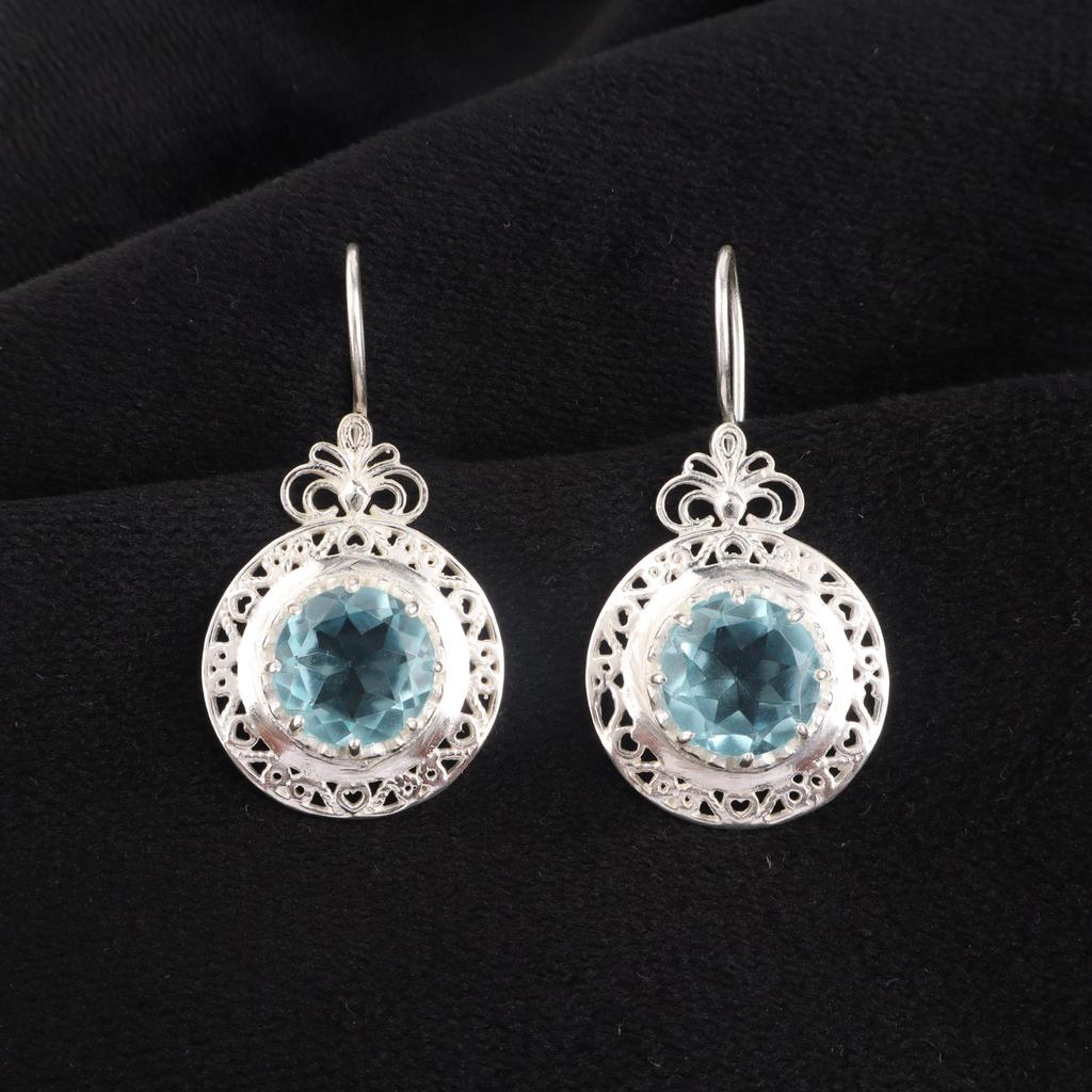 Ασημένιο Σκουλαρίκι Τοπάζι Γαλάζιου Ουρανού 1,5", Κοσμήματα από Ασήμι 925 Sterling, Κοσμήματα Μήνα Γέννησης Δεκέμβριο, Γυναικείο Σκουλαρίκι Για Δώρο Ευχαριστίας CE-25-12