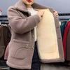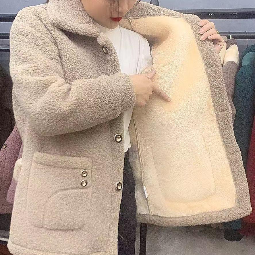 Women's Mid-Length Beige Faux Fur Lambswool Coat