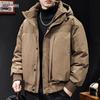 This Men's Hooded Puffer Jacket offers exceptional winter protection with its duck down filling, ensuring warmth without added bulk. Featuring a sleek and modern design, its thin profile is perfect for layering. Crafted from durable corduroy, the jacket offers a unique texture and style, with corduroy also used for the material of its fur detailing. Designed specifically for men, this jacket is both practical and fashionable, making it an ideal choice for winter workwear and outdoor activities, effectively shielding against the cold wind.