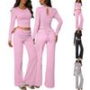 Women's Pants Suits Long Sleeve Long Round Neck Short Top + Straight Pants