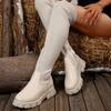 Introducing the ultimate blend of comfort and style for the modern woman: our latest autumn/winter collection features fly-knit thigh-high boots designed specifically for plus sizes. These round-toe boots boast an elastic over-the-knee design, ensuring a snug yet flexible fit for effortless wear. Crafted with a durable polyurethane upper and a thick rubber sole, these boots provide superior support and grip, perfect for navigating any terrain. Thanks to the polyurethane insole, each step feels cushioned and delightful, even during the longest days. Whether dressing up or down, these versatile boots are the perfect addition to your seasonal wardrobe.