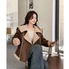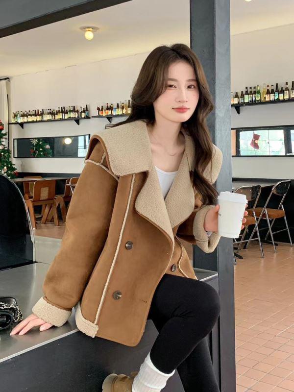 Khaki Fleece-Lined Shearling Coat: 2024 Winter Street Style Big Lapel Biker Jacket