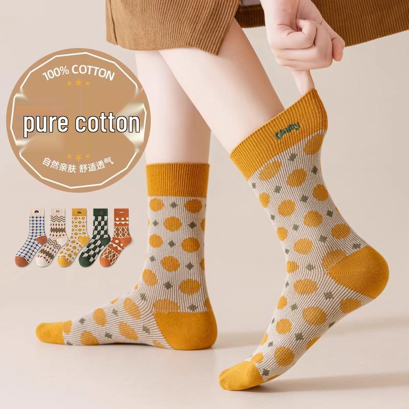 Γυναικείες Ρετρό Εθνοτικές Κάλτσες Μέσου Μήκους από Καθαρό Βαμβάκι για Φθινόπωρο/Χειμώνα, Ιδανικές με Μποτάκια Martin