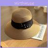 This straw sun hat features a wide brim and a round crown, providing effective sun protection and shielding the neck from UV rays. Made of breathable materials with fiber content, it measures approximately 15 inches in diameter. Ideal for outdoor beach trips or summer walks. Wipe clean with a damp cloth to maintain its appearance.