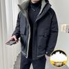 Stay warm and stylish during the cold months with this men's hooded winter windbreaker work coat. Expertly crafted with a thin layer of duck down filling, it provides excellent insulation while maintaining a sleek and lightweight profile. The outer shell and fur detailing are made from high-quality corduroy, adding a touch of texture and sophistication. Designed specifically for men, this coat offers both comfort and durability, making it the perfect choice for both work and casual occasions in chilly weather.