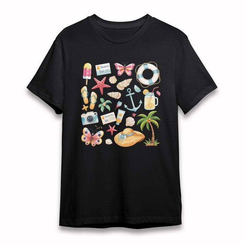 Women's Oversize Soft Trend Classic T-Shirt Starfish Ice Cream Camera Design Tee