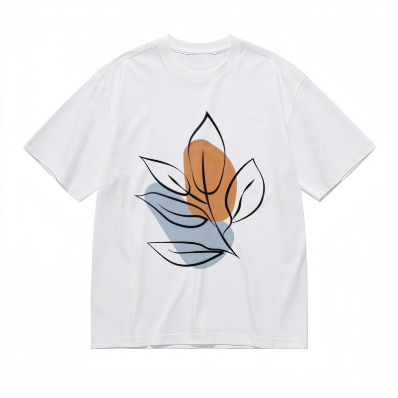Women's Classic T-Shirt Abstract Botanical Line Art Brown Blue Print Cotton Tee
