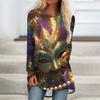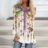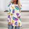 Women's Fashionable Round Neck Raglan Long Sleeved Carnival Printed Casual Pullover Top