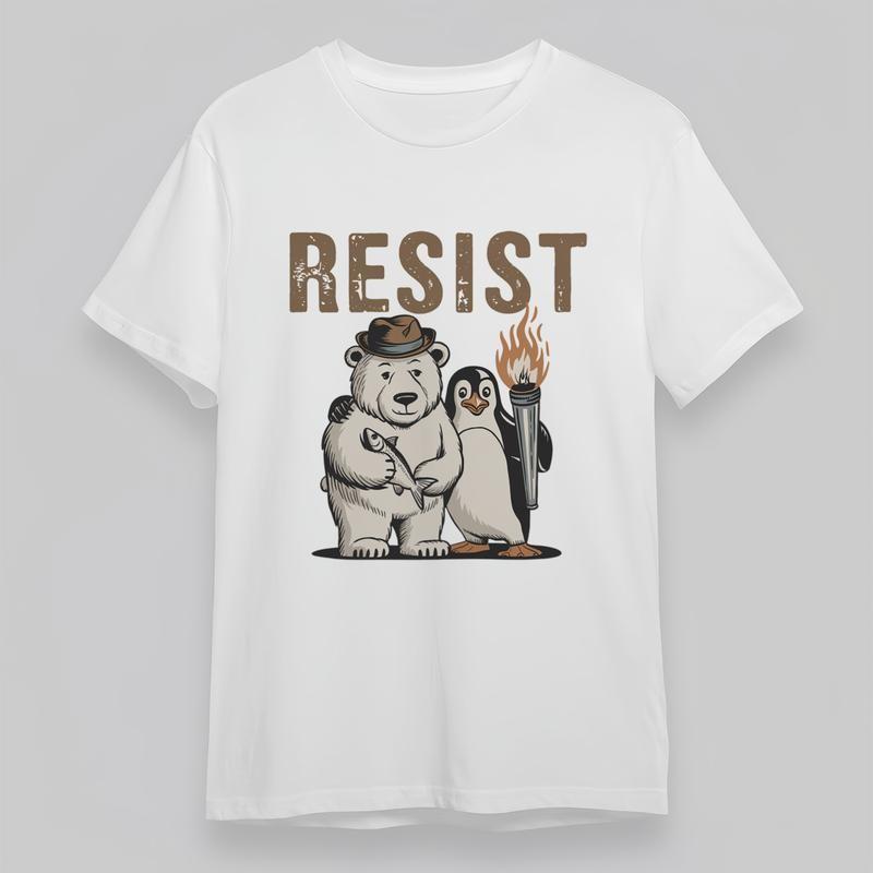 Women's Oversize Comfortable Classic T-Shirt Bear Penguin With Torch Graphic Tee