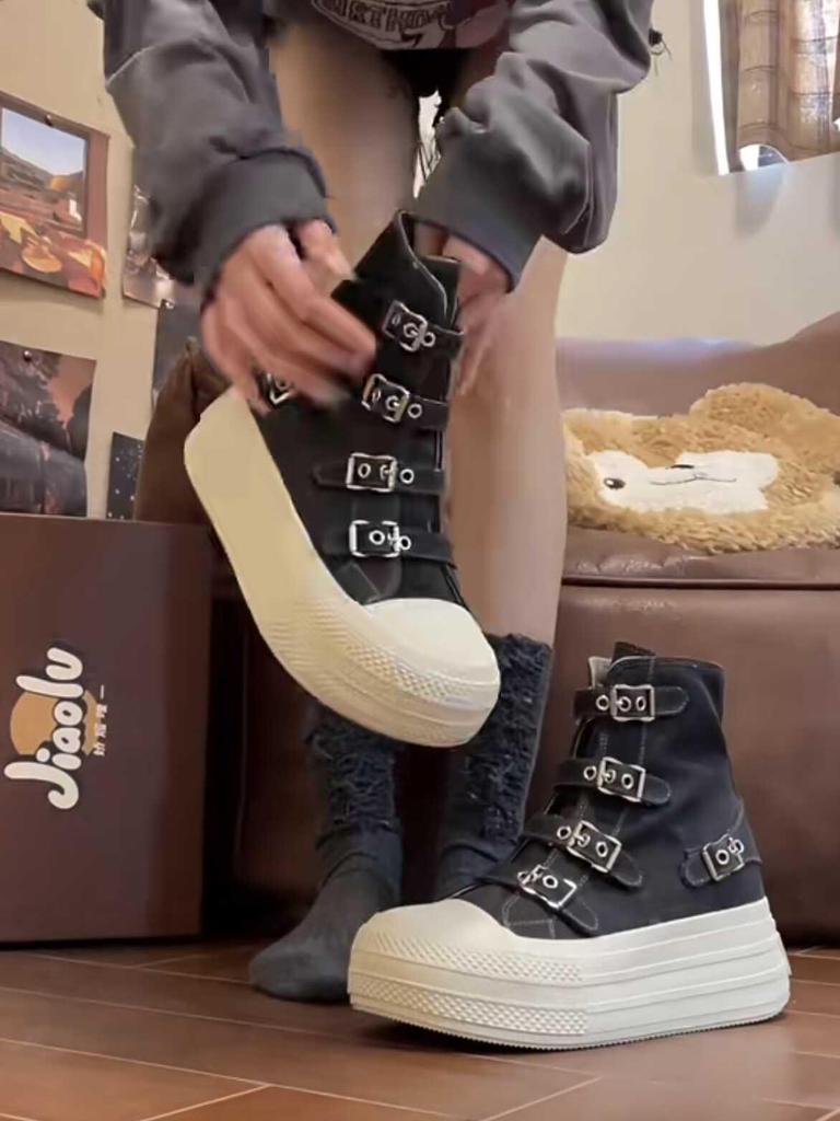 Women's 6.5cm Lift High-Top Canvas Shoes - Petite, Versatile, Breathable, Thick-Soled for Spring & Autumn