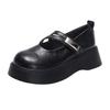 Mary Jane shoes women's autumn new shallow mouth one-word buckle belt thick sole medium heel small leather shoes women