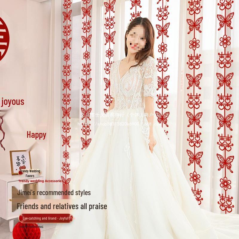 Wedding Room Decor Set: Double Happiness Curtains & Ornaments for Bedroom or Hotel