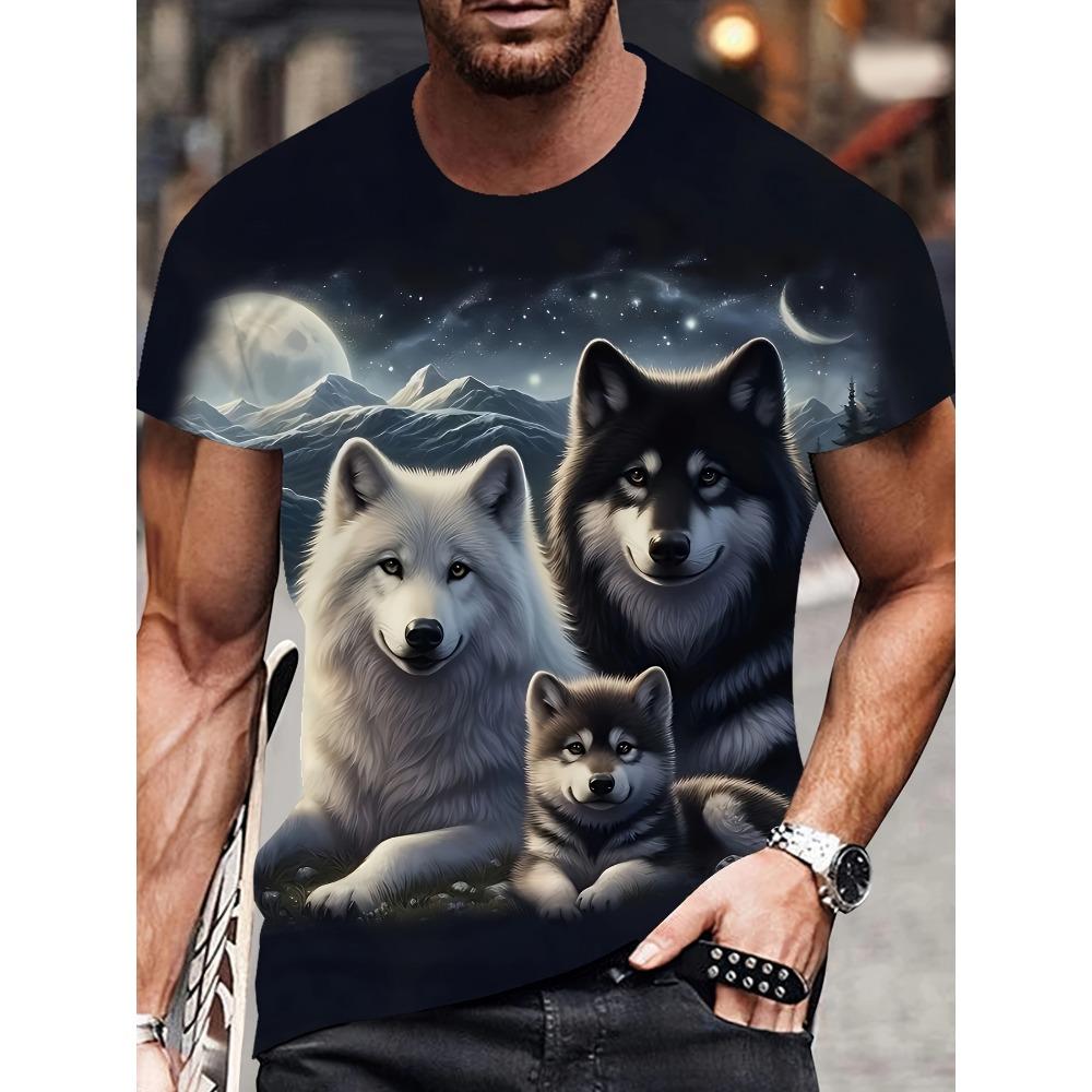 Men's wolf print t-shirt, breathable polyester casual breathable sports shirt top t-shirt, men's and women's t-shirt, children's t-shirt
